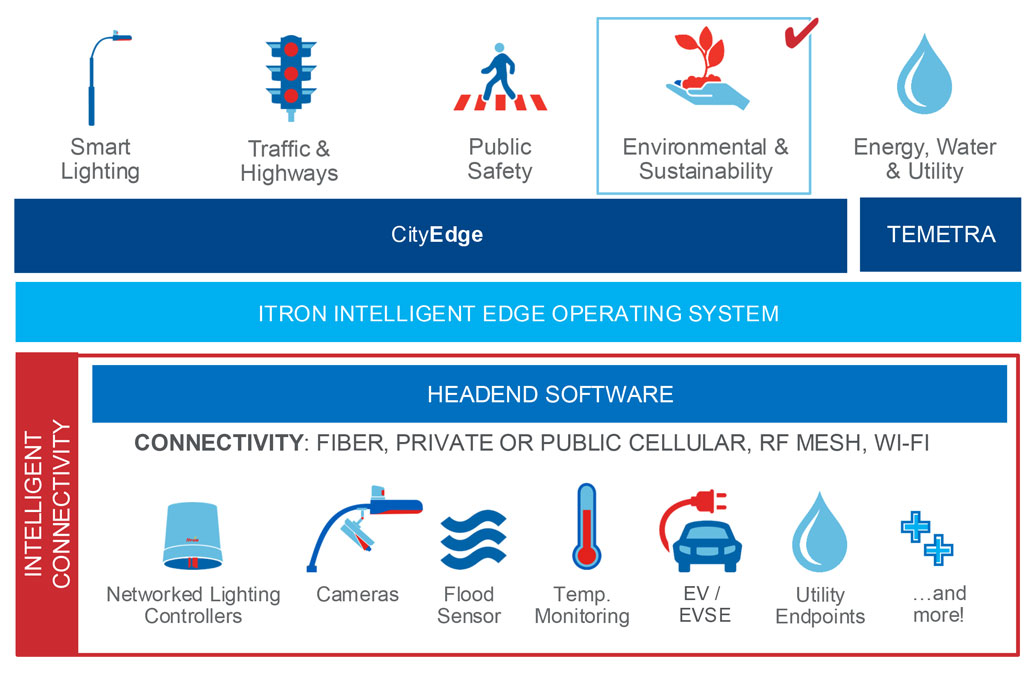 Political policies and economic realities are shifting in response to the effects of climate change and other sustainability imperatives. Increasing demand for electricity, transportation and other resources makes it more difficult for cities to meet environmental and social goals. Itron’s CityEdge provides data and applications needed to support carbon reduction roadmaps, economic growth, environmental protection and resiliency plans.